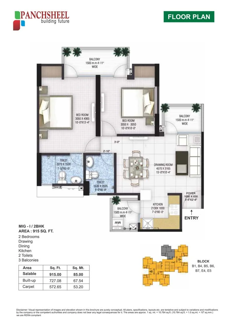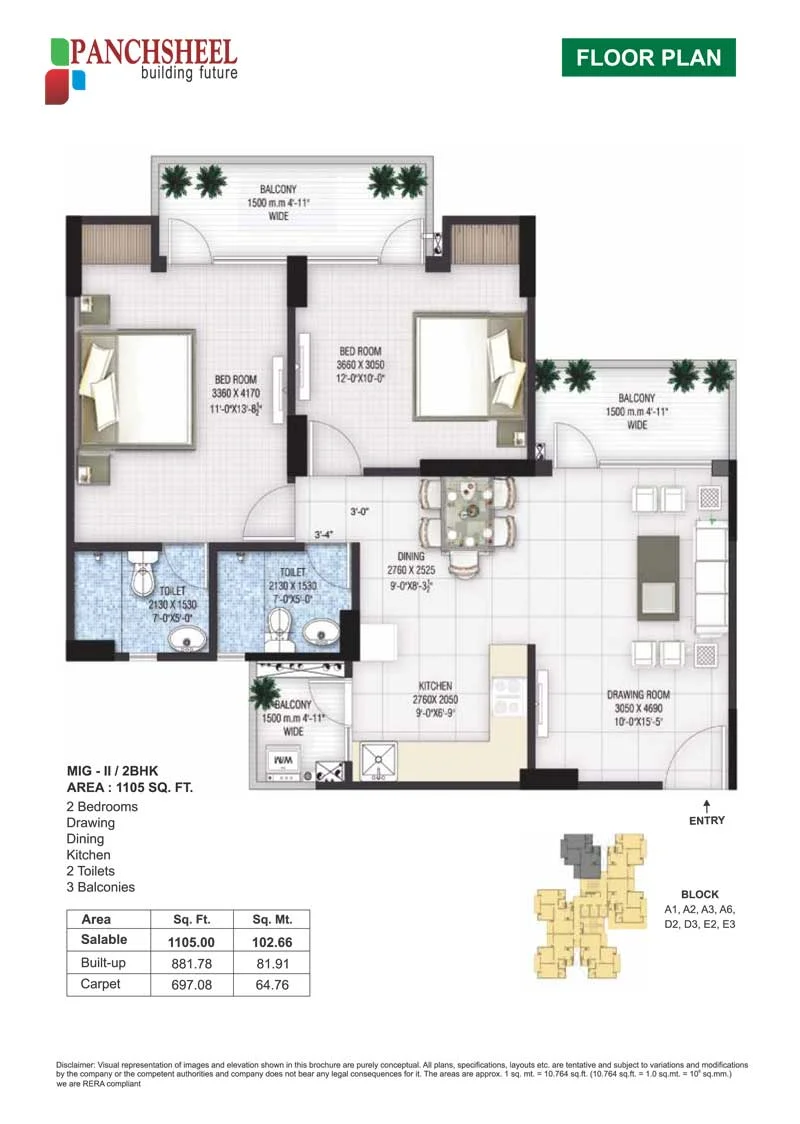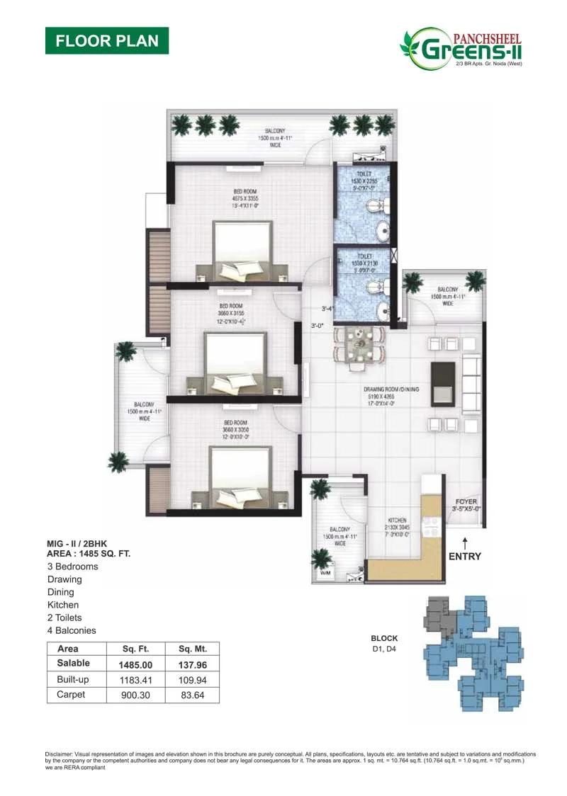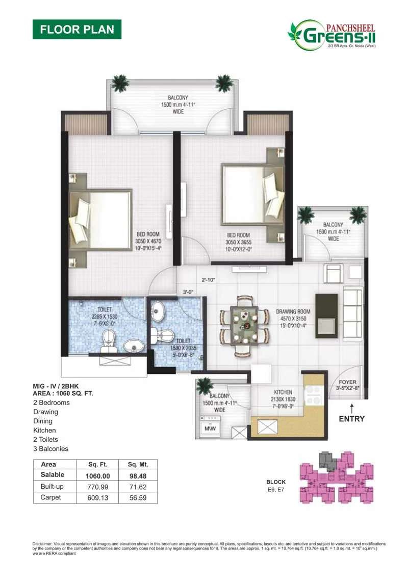 Panchsheel Greens 2/3 BHK Floor Plans